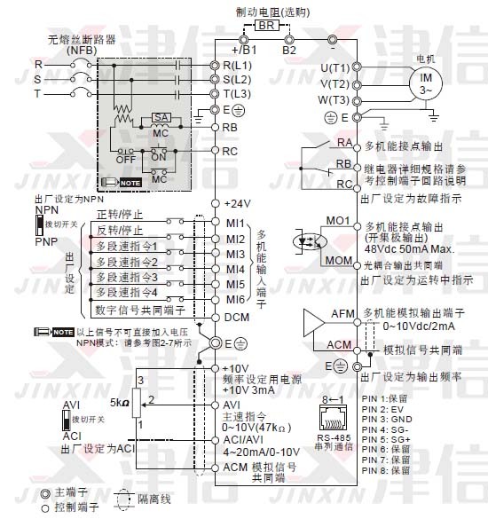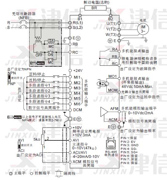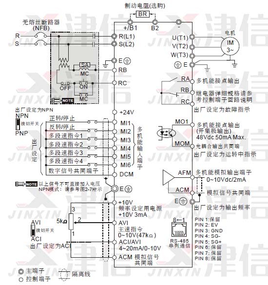 l 為了安全和減少噪聲,230V 系列采用第三種接地(E ),460V 系列采用特種
