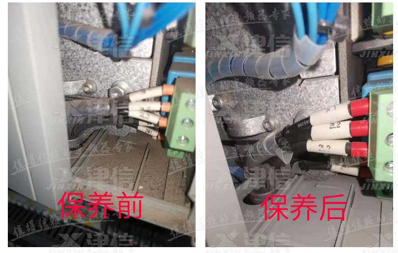 某食品飲料公司現(xiàn)有各品牌變頻器100多臺,由于變頻器長期使用,內(nèi)部積灰較多,導(dǎo)致變頻器散熱情況較差,部分變頻器的端子接線不符合規(guī)范,通過維護保養(yǎng),消除使用隱患,確保變頻器運行穩(wěn)定。