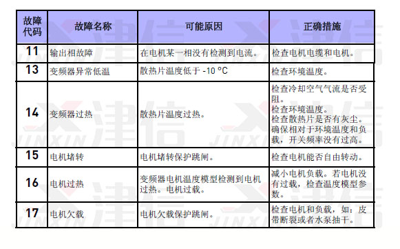 2、偉肯變頻器故障代碼11,13,14,15,16,17