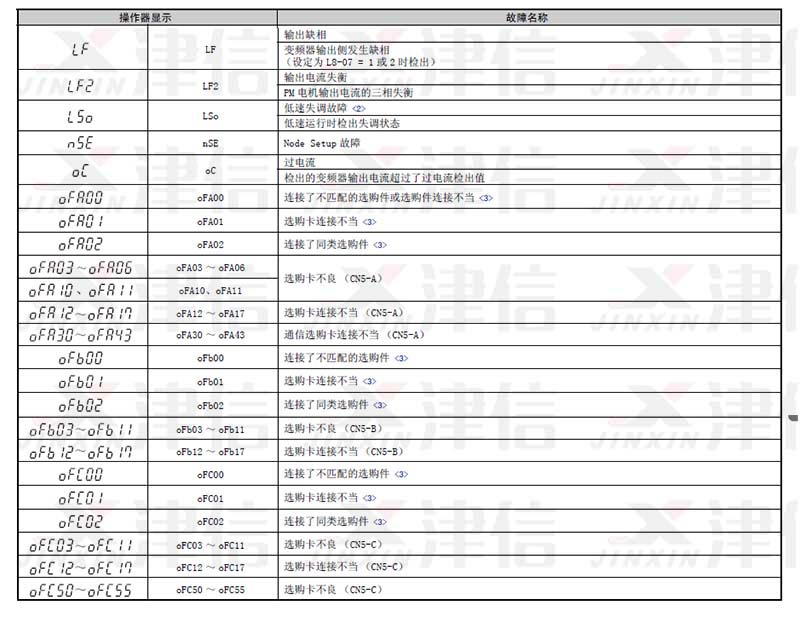 安川A1000變頻器故障代碼和維修對策