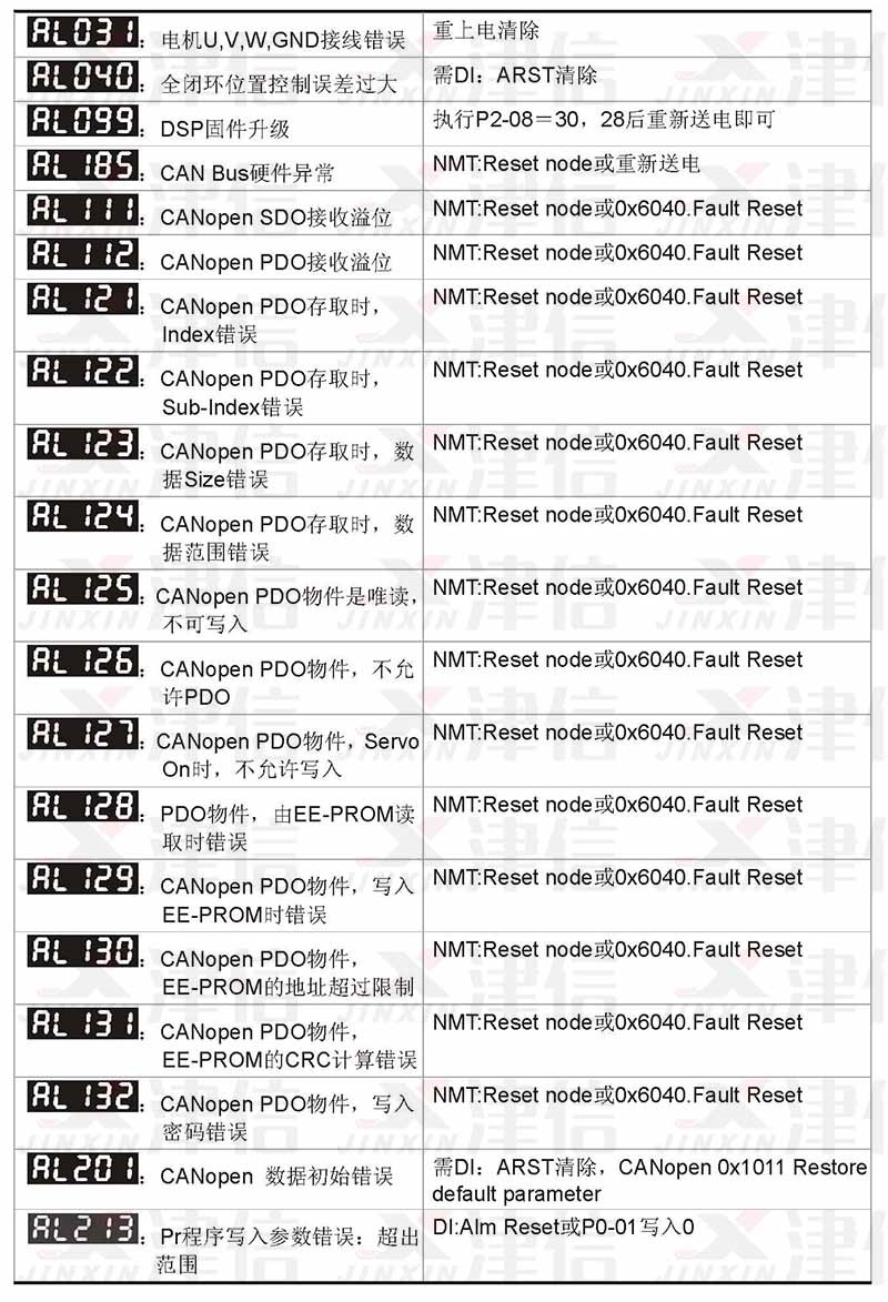 四、AL301,AL302,AL303,AL304,AL305,AL380故障代碼