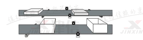 如上圖所示,即使兩條輸送帶同步運行,蓋子仍舊無法在正確的時間與盒子對齊,使用SYNCM指令時,可通過外部標記對主機與從機之間的位置偏差進行檢測,并對可能出現的位置偏差進行修正。