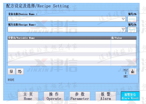 在實際使用中,因客戶產品的多樣性,需要不同的工藝參數,通過西門子觸摸屏的配方功能,可以保存客戶不同產品的工藝參數,并可以快速切換不同配方,提高了設備的通用性。