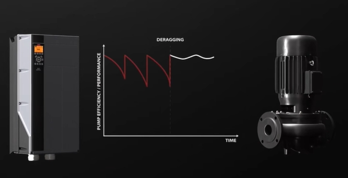 及早檢測堵塞問題并加以凈化,其背后的技術(shù)內(nèi)置于丹佛斯智能變頻器內(nèi)。基于工況的監(jiān)測和凈化功能協(xié)同作用,實現(xiàn)可靠無憂的泵送。工況監(jiān)測與凈化達成的組合效應(yīng)也稱為基于工況的凈化。